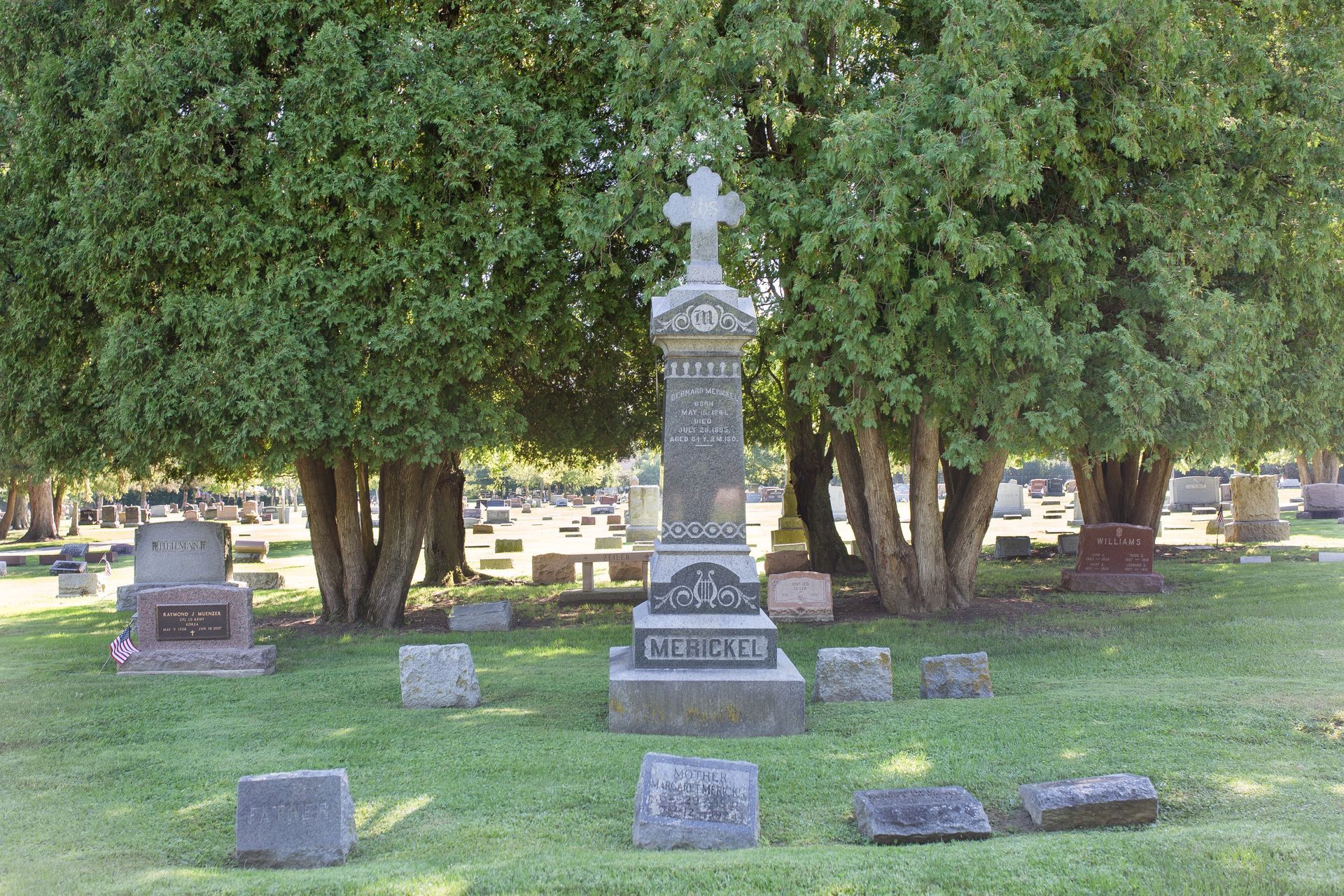 It was once stated “It is beautifully located and at the time it was considered the finest and best kept burial grounds in the western part of the diocese.” In 1881, Father John B. Burkel placed a large “marble” cross, in what was then the center of the cemetery.